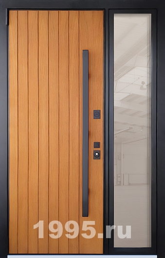 Металлическая дверь со стеклом сбоку, МДФ и длинной ручкой (терморазрыв)
